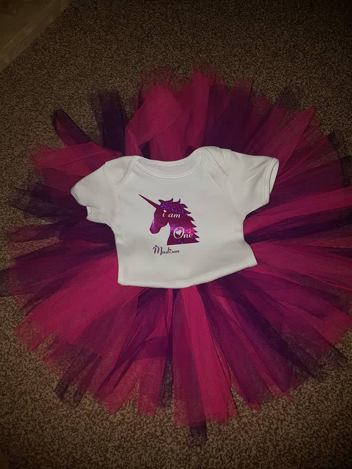 Are you planning a 1st birthday party? or maybe even a cake smash photo shoot for your little one. Why not order a personalised top and tutu. We can make them any colour and any sizes, We can also print any thing you'd like on them.