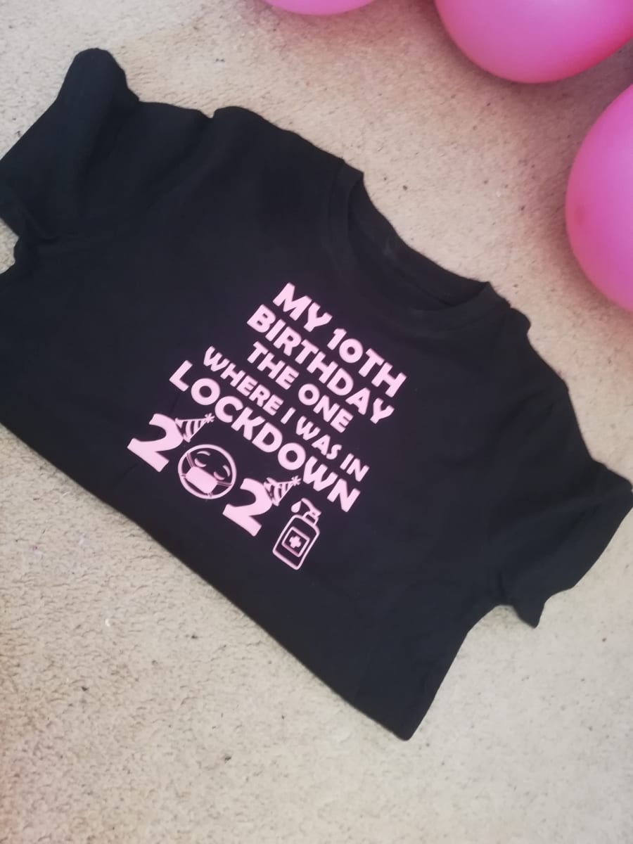 Lockdown t-shirt, is your birthday in lockdown. Does someone you know have a birthday coming up and you'd like to get them a unique gift? Why not order s lockdowns top for them. We have many different designs available, we have different colour tops and writing. Have a idea for a design but we don't do it? Give us a message and see and see what we can do.