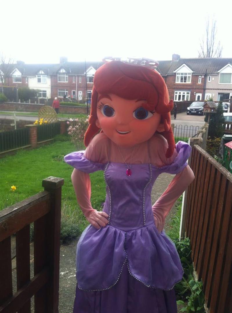 Princess sofia the 1st mascot costume hire in Rotherham, Sheffield, Worksop and the surrounding areas.