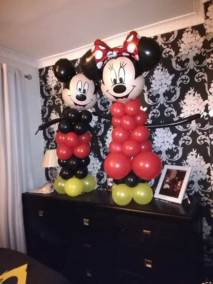 Mickey and minnine mouse balloon stand about 4ft tall, they are great a great addtion to any party or birthday mornings for the side of the presents.