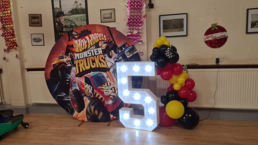 Pair the Monstertruck Hoop with our light-up numbers to create a stunning centerpiece or use it as a backdrop for a photo booth. You can even add balloons around the sides to enhance the visual appeal. The possibilities are endless, and the Monster truck Hoop allows you to customize and elevate your event to the next level.