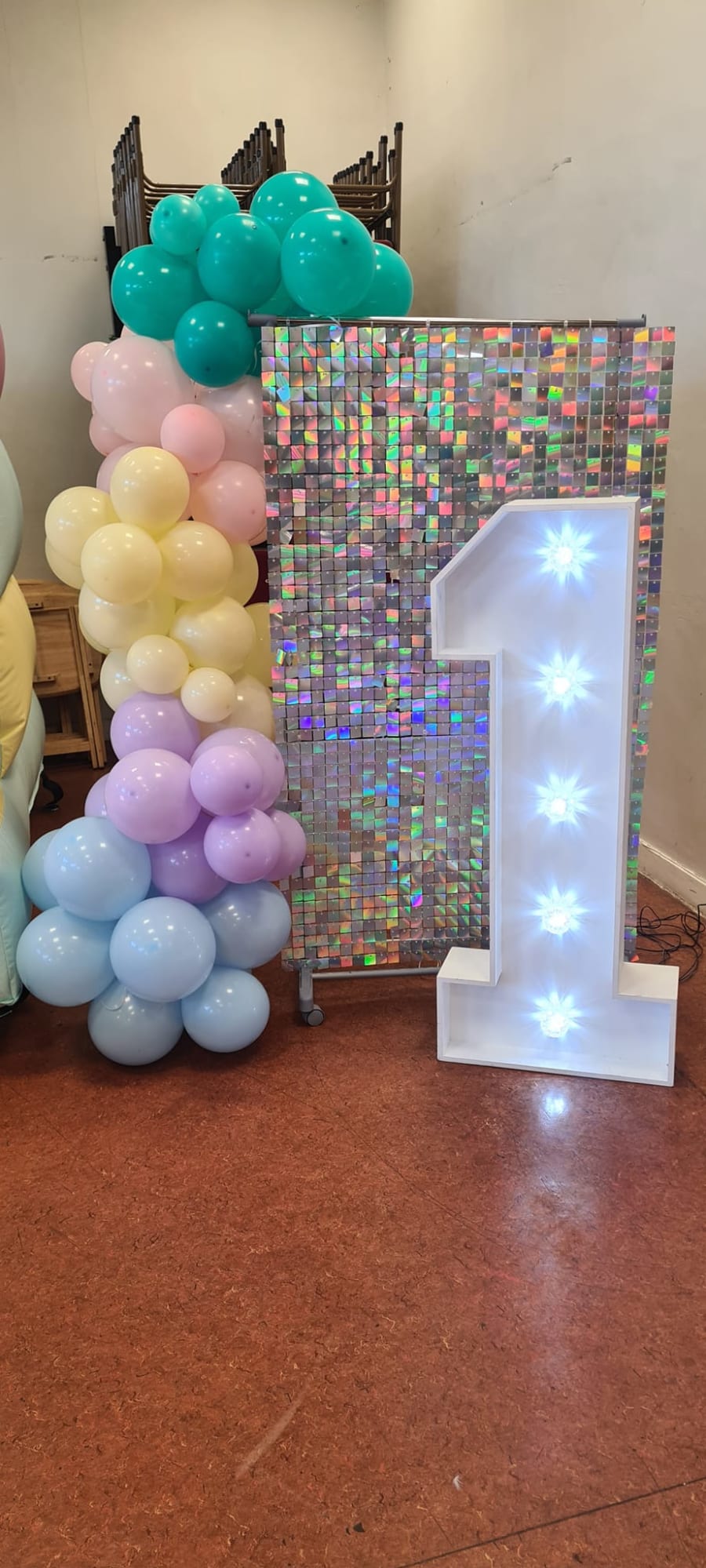 Our small shimmer wall and balloons to match you theme.