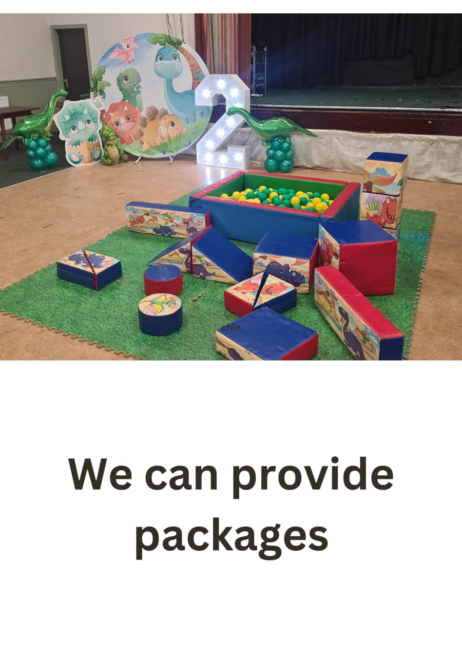 If your planing a dinosaur party we also have matching dinosaur soft play and ball pools, we can also provid balloons too.