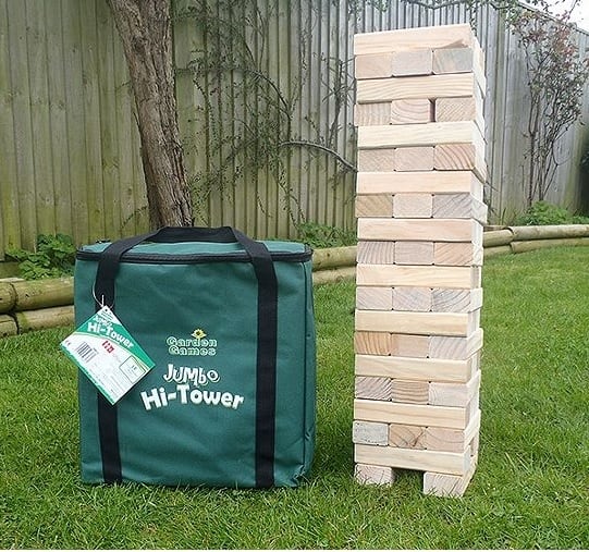 A larger version of the fun table top stacking game, Based on the popular game of Jenga, The game consists of 58 smooth, solid wooden blocks which stack to form a tower starting at 0.6m tall and reaching a height of up to 1.56m in play. Build the tower and then take turns to remove a piece without making the whole tower tumble. The winner is the last person to remove a piece and replace it on the top of the tower, leaving the whole tower standing. This size of tower is ideal for children as well as adults, and is suitable for playing indoors and out. Perfect for BBQ's, parties, family gatherings or just a little fun in the garden.