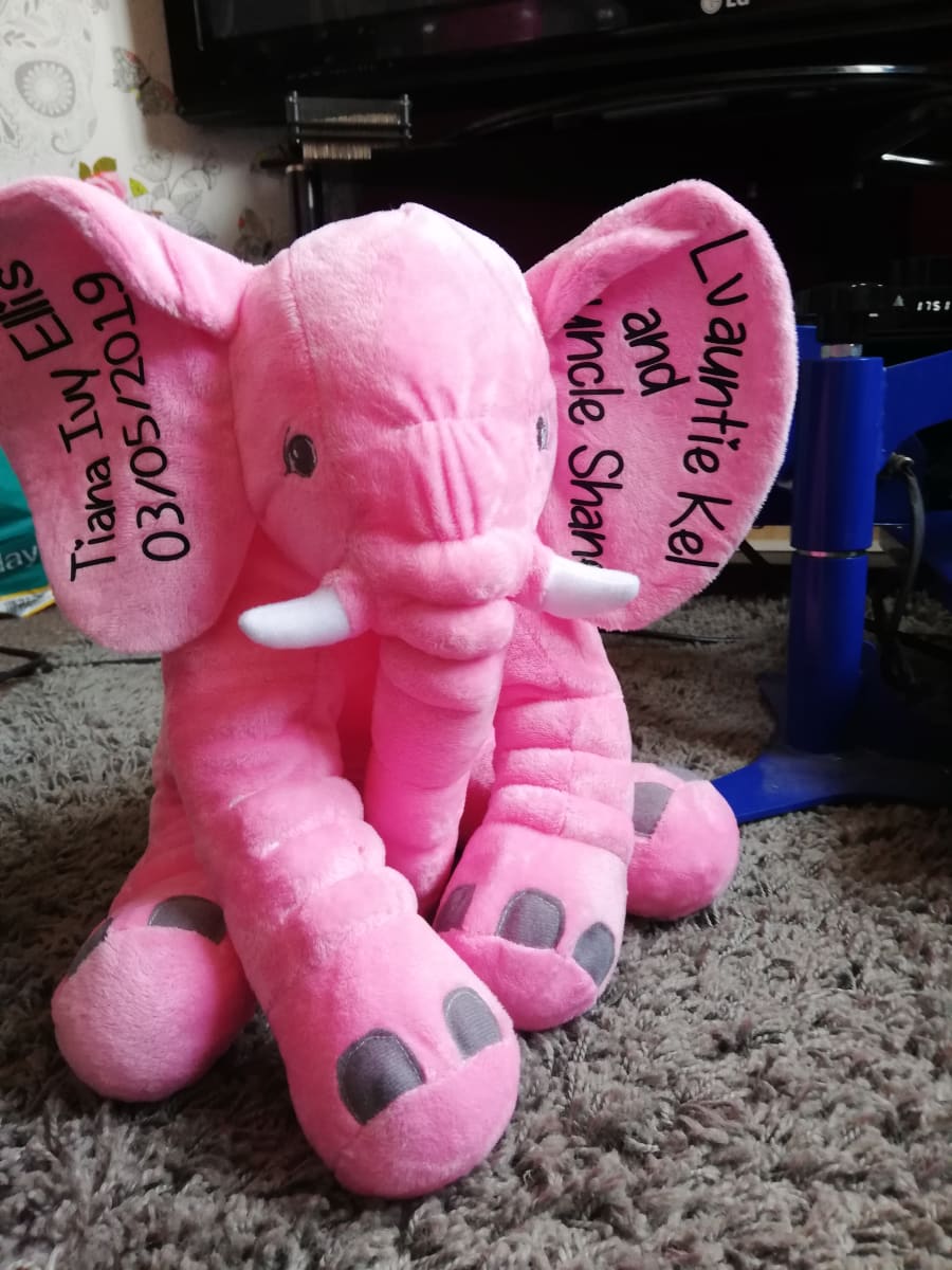 Personalised elephants. These elephants are great keepsakes and perfect for gifts. These can be personalised any way you like. We have pink, grey and blue available.