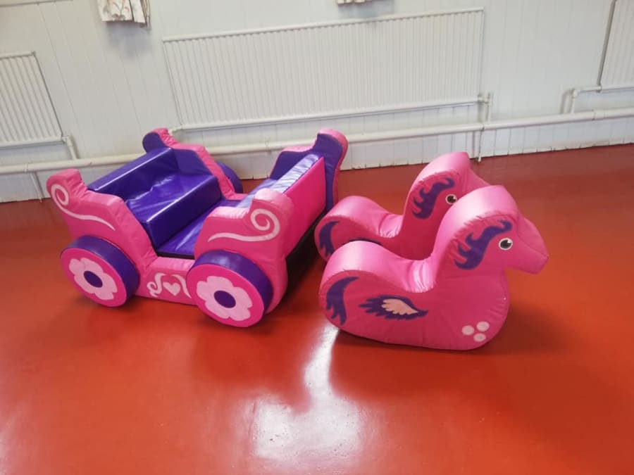 Our pink princess carriage is perfect to add along side our soft play packages, and also our bouncy castles.