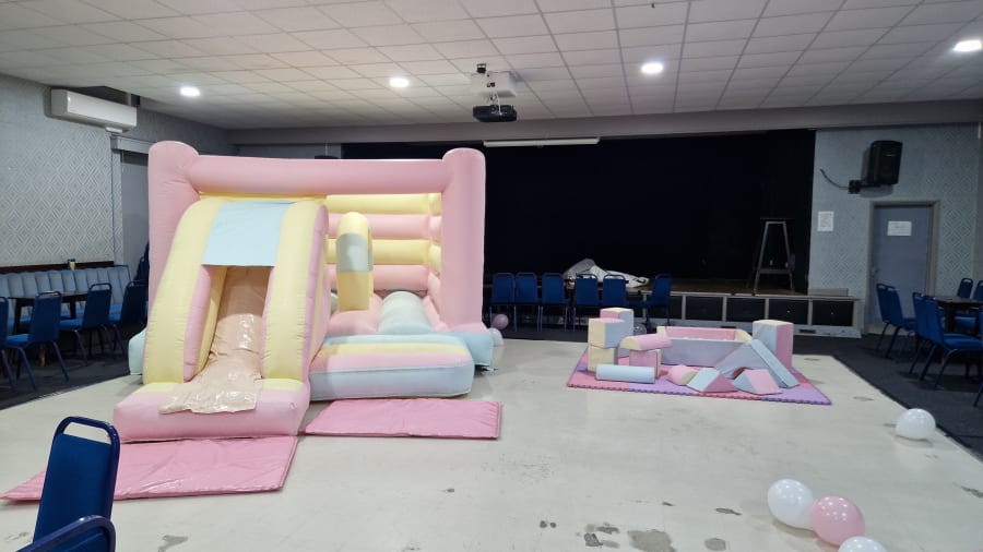 Are you searching for the perfect way to entertain little ones at your next indoor event? Pastel combi package is designed to bring joy, excitement, and a touch of elegance to any celebration. This all-in-one package features a pastel-themed bouncy castle with a slide, complemented by a delightful soft play area—ideal for birthdays, christenings, baby showers, and family gatherings!
