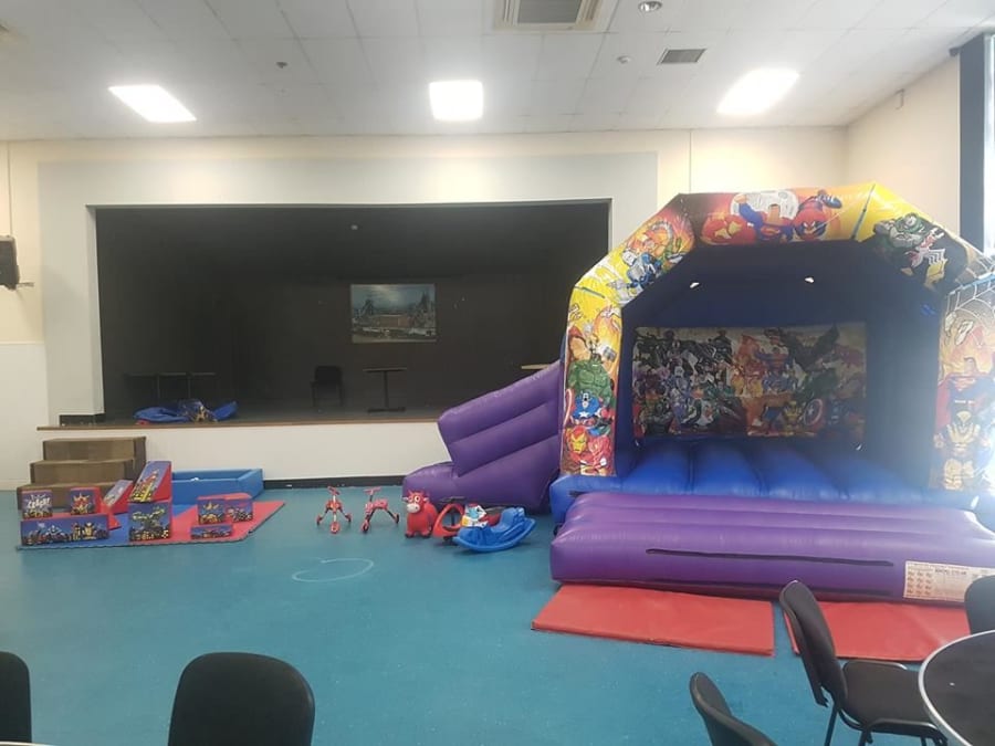 Here we have our superhero combi bouncy castle with built in slide, along with our super hero soft play, this package is perfect for any party or event, The bouncy castle 16x18ft and has built in rain/shower cover.