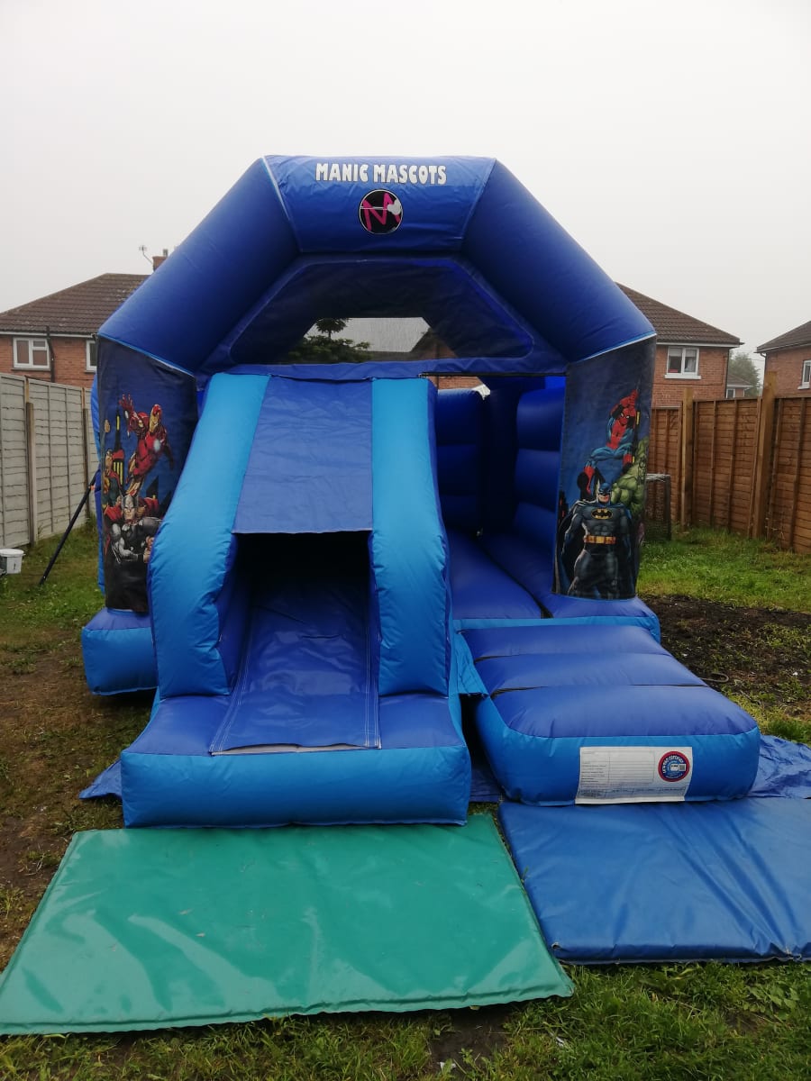 This super hero bouncy castle is the best of both worlds, its a bouncy castle with built in slide.