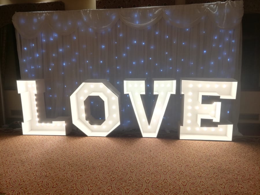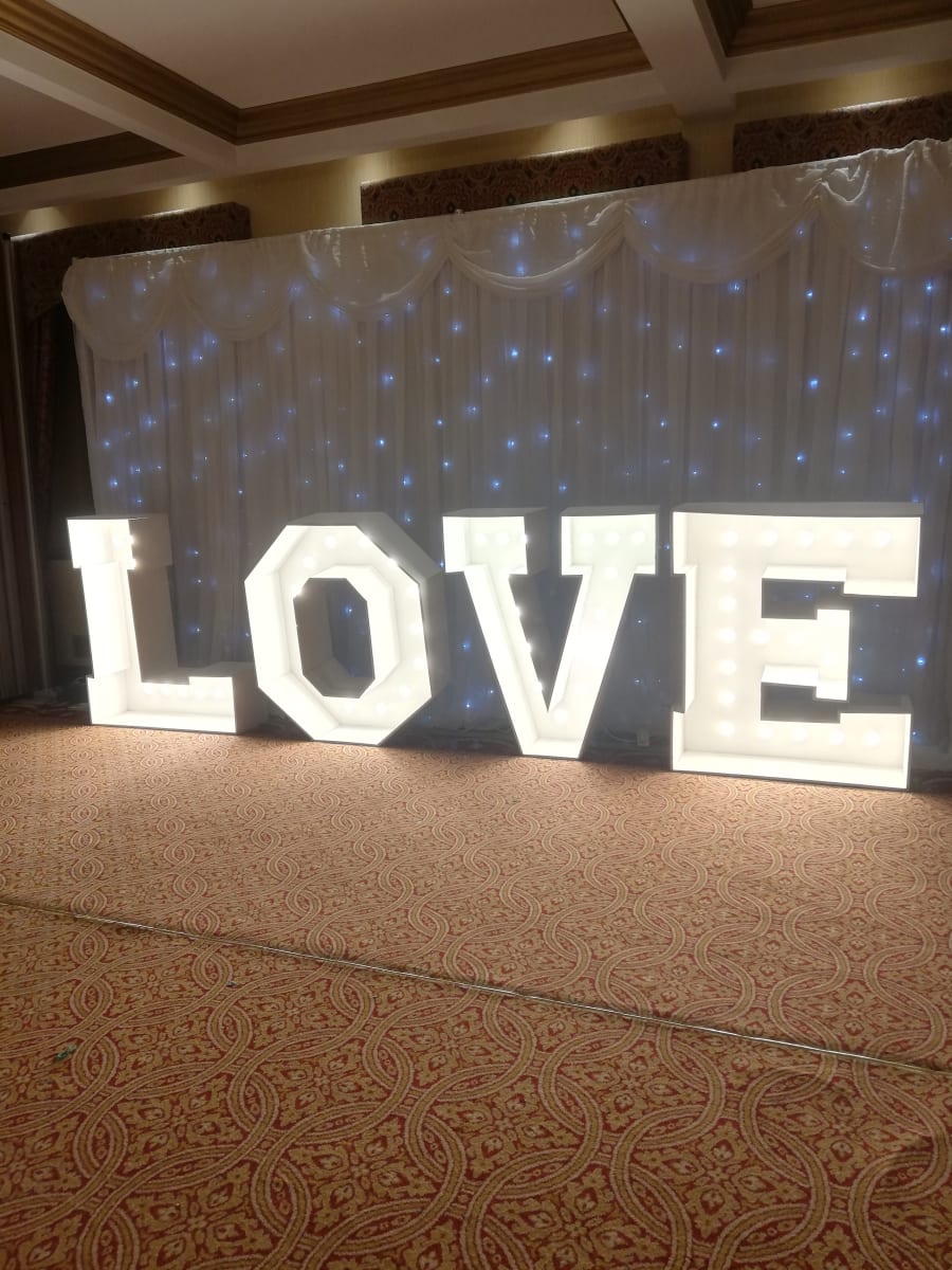 Here we have our "light up" package which includes our white 4ft love letters and our twinkle back drop. Booked together for a great vale deal 💖