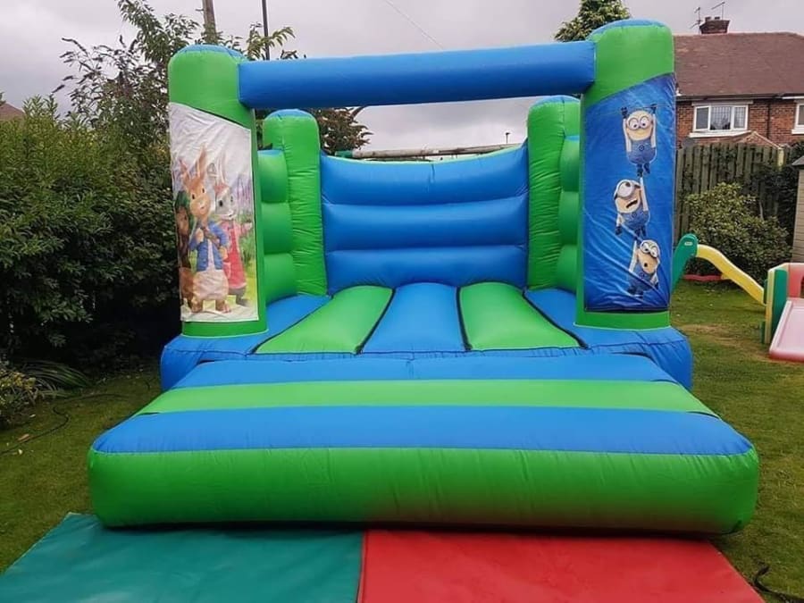 Green and blue base for our bouncy castle. This castle can be any theme we have.